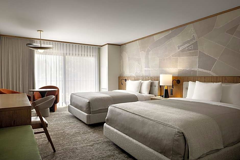 This room shares a connecting door with a Superior Queen Room (Connecting) and features a balcony or patio with an outward facing view. A 47" flat-screen TV, a table with 2 chairs, a spacious bathroom with double vanity, and a coffee maker are included.